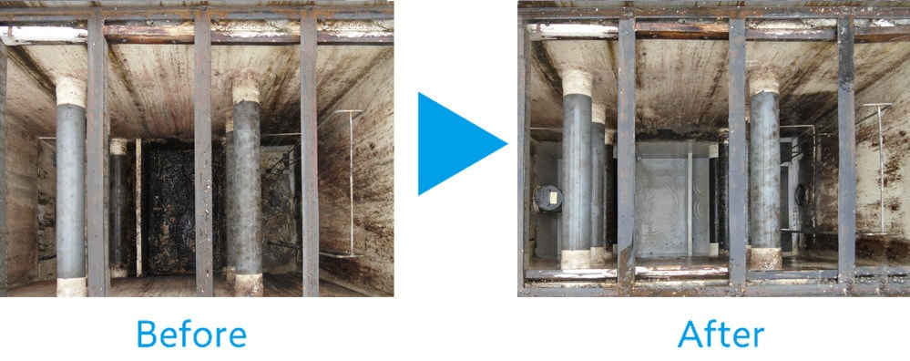 こびりついた汚れを徹底的に落として全体を丁寧に清掃し、油脂・汚泥・残渣をバキュームで吸引します。