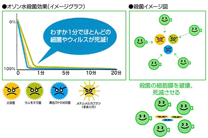 オゾン洗浄で、強力な殺菌・脱臭作用。