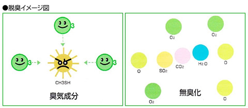 オゾンの優れた酸化力が、悪臭の原因を直接分解し、臭いを速やかに取り除くことができます。