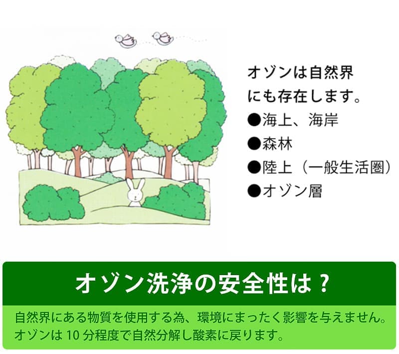 オゾンは速やかに自然分解し、酸素に戻るため、二次汚染や残留毒性の心配がありません。