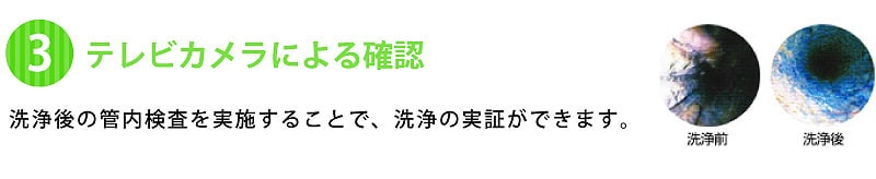 テレビカメラによる管内検査事前の管内検査と同一箇所より、テレビカメラによる再検査(室内枝管については洗浄後に行う)洗浄効果の確認