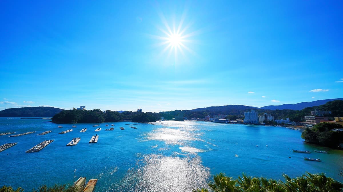 大鷲が羽を広げたような形をした三重県、その大鷲の頭の形をしたここ鳥羽・志摩地域は、熊野まで続く山々が荘厳な風景を描き出し、リアス式海岸で有名な海岸からは愛知県の先端まで見渡せることができ、太平洋を拝む方向にはゆっくりとした青い水平線を描いて地球の形を見せてくれています。